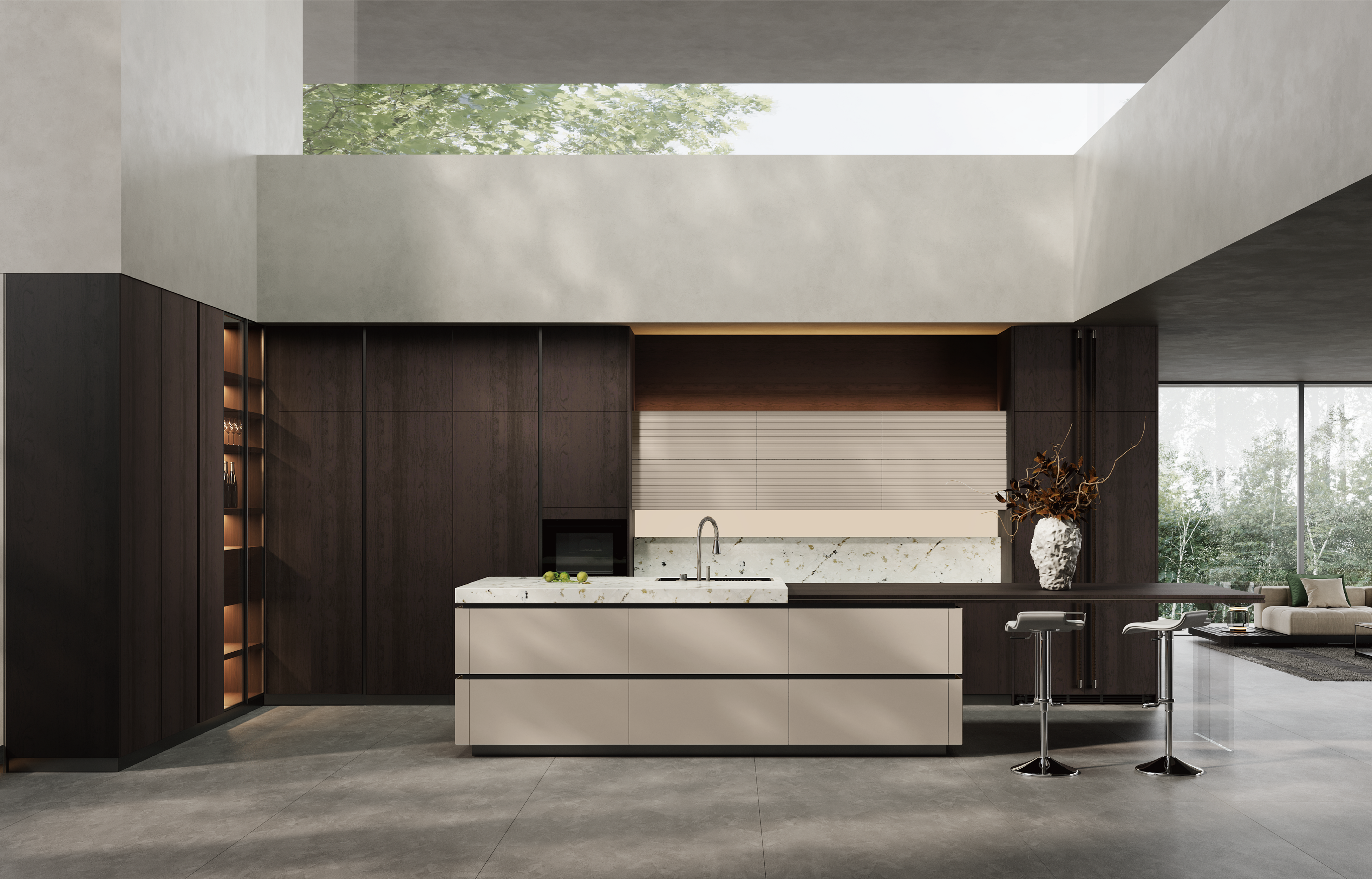 通过宝运莱厨柜量体裁柜,定制出适合主厨下厨的烹饪区和洗涤区的舒适高度。